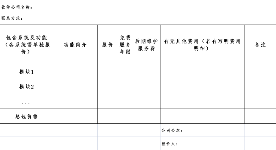 (5)软件系统报价单(见附表;该项资料,除需提供纸质版盖章,还需要一并提供excel电子版);