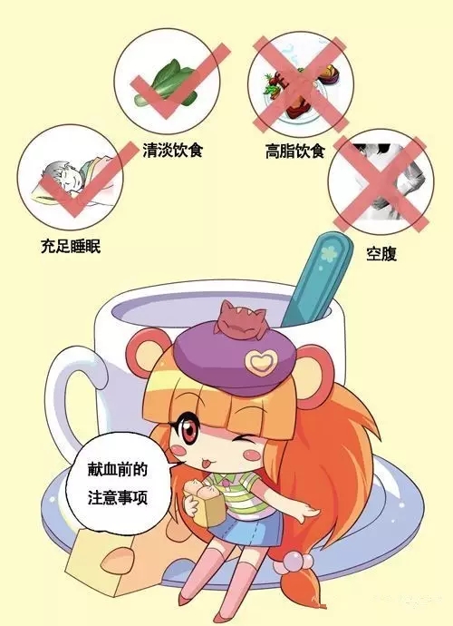 应学习献血知识,了解献血常识,消除紧张心理。献血前应尽可能适当休息,保证充足睡眠。献血前两餐不吃油腻食物、不饮酒,但也不要空腹献血,可吃馒头蔬菜等清淡食物;?且最好洗一次澡或洗净双臂。