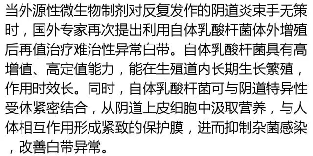 自体乳酸杆菌体外增殖后再值治疗白带异常