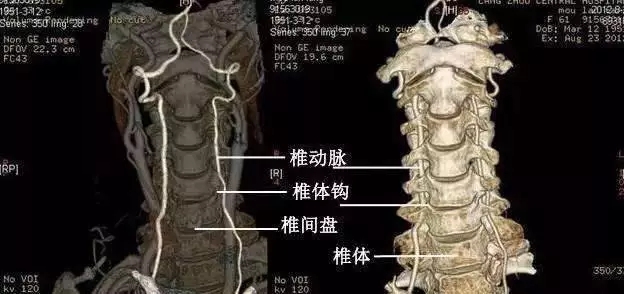 大部分医生及患者认为,由于颈椎病变导致血管(椎动脉)受压,从而出现头晕,并以此作为诊断颈椎病的依据。其实椎动脉的走形是从颈椎两侧的横突孔穿过,从颈椎应力学的角度看,只有椎间盘向两侧严重突出才有可能压迫椎动脉。国外一项203例椎动脉造影研究发现只有2例骨赘引起椎动脉侧向移位,此类情况的比例<1%。