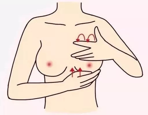 5、双手放在乳晕上方,绕着**作螺旋状**,每边重复20~40次。