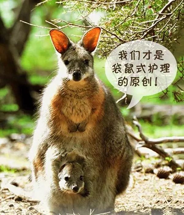 袋鼠式护理又名皮肤接触护理,是指将早产儿放在母亲的怀抱中,直接接触母亲肌肤的护理方式。因为母亲将小婴儿放在胸前喂养的姿势十分像袋鼠,所以这一喂养方式被命名为“袋鼠式护理”。母亲用自己的身体作为人工保温箱,维持新生儿的体温的同时进行规律的母乳喂养。