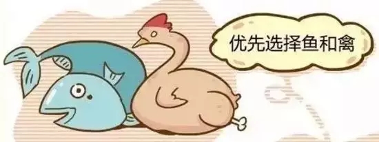 鱼、禽类即一般所指的“白肉”,与畜肉(一般称“红肉”)比较,脂肪含量相对较低 ,不饱和脂肪酸含量较高 ,特别是鱼类,含有较多的多不饱和脂肪酸,对预防血脂异常和心脑血管疾病等具有重要作用,因此,应作为首选食物 。
