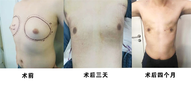 还有一种微创手术——腔镜辅助乳腺皮下腺体切除术。随着技术发展,腔镜微创也在多种疾病治疗中得到长足进步,而腔镜辅助乳腺皮下腺体切除术在男性乳腺发育症的手术治疗中越来越显示出它得天独厚的地位,其术后的平整外观及隐秘微小的手术疤痕可为男乳患者带来更为满意的治疗及美容效果,从真正意义上做到“腔镜男乳,回归男儿本色”!
