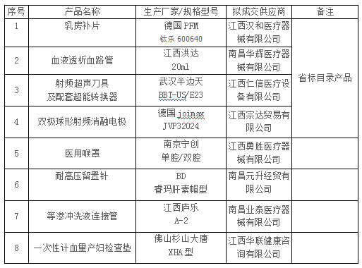 经2018年4月20日、6月20日、9月5日及9月11日院内议价,就**补片、医用喉罩、血液透析血路管、耐高压留置针、等渗液冲洗连接管、射频超声刀具、双极球形射频消融电极、一次性计量产妇检查垫院内议价采购结果公示如下: 一、基本情况: 二、公示时间:自公示之日起3个工作日
