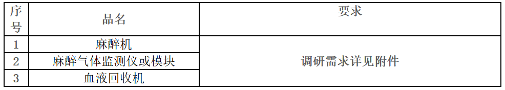 附件3:麻醉科设备设备调研需求