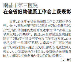 【江西日报】捕鱼游戏 在全省妇幼健康工作会上获表彰