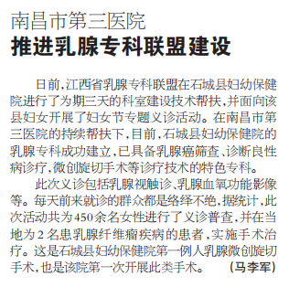 【江西日报】捕鱼游戏 推进乳腺专科联盟建设