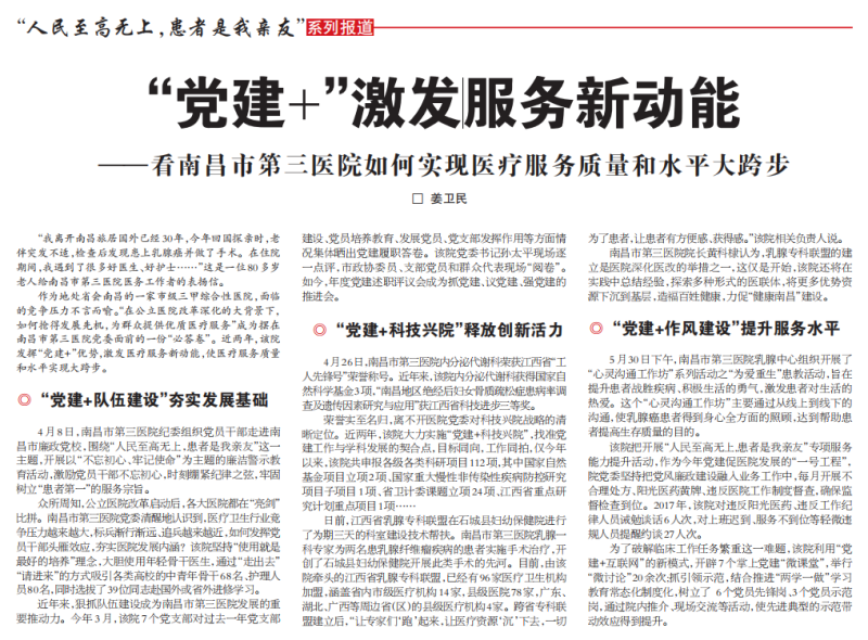 【江西日报】“党建+”激发服务新动能——看捕鱼游戏 如何实现医疗服务质量和水平大跨步