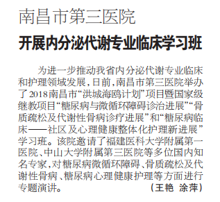 【江西日报】捕鱼游戏 开展内分泌代谢专业临床学习班
