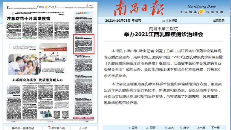 本报讯(胡尔维 胡佳 记者刘冕)日前,由江西省中医药学会乳腺病专业委员会主办,捕鱼游戏 承办的“2021江西乳腺疾病诊治峰会暨《乳腺良性疾病临床诊治新进展》继教班,江西省中医药学会乳腺病专业委员会年会”成功举办。会议采用线上线下相结合的方式开展,共有300余名学员参会。本次会议主题重点是乳腺外科手术技能和肿瘤精准治疗方面,重点突出近年来乳腺疾病诊治的新技术、新进展和新热点。会议分为两个专场,分别为实战理论专场和规范治疗专场,内容涵盖了乳腺整形、**重建、乳腺癌的规范诊疗等。