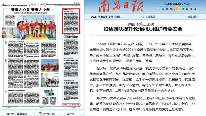 本报讯(邓娜 夏志新 记者 刘冕)日前,由南昌市卫生健康委员会、南昌市妇女联合会主办的2021年南昌市母婴安全技能大比武活动落下帷幕,捕鱼游戏 妇幼团队周慧、肖燕丽、洪海芳、陈巧超从参赛的七家医院选手中脱颖而出,取得了团体一等奖。