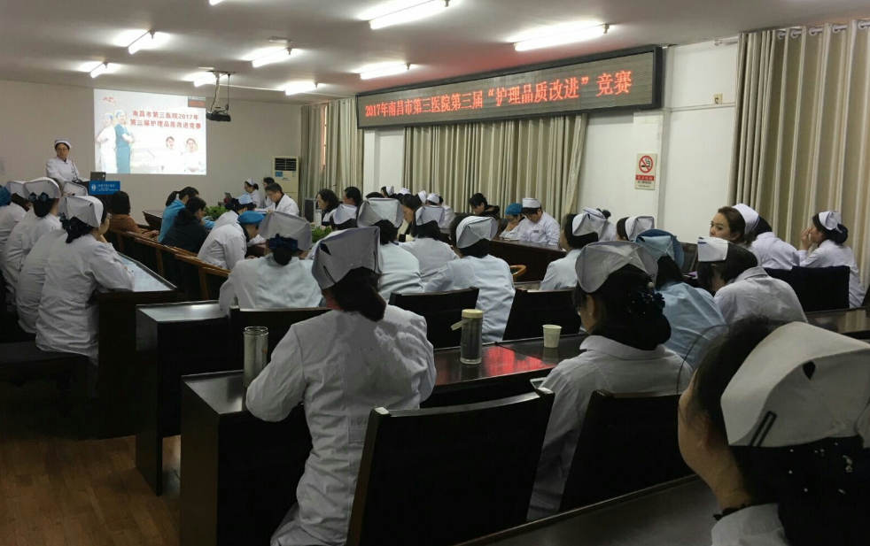 为了提高护理人员分析和解决问题的能力,提升护理服务品质,展示护士风采,为护理单元提供一个展示工作亮点的平台,同时进一步提升护理人员使用护理管理工具,更好地优化护理流程,为患者提供安全、规范、有效的优质护理服务,2017年11月30日,捕鱼游戏 护理部与工会联合主办护理品质改进竞赛活动,副院长曹亚丽亲临现场观摩指导,党办主任姜卫民、工会副主席赵艳、质管办主任杜小军、护理部主任和科护士长担当评委。