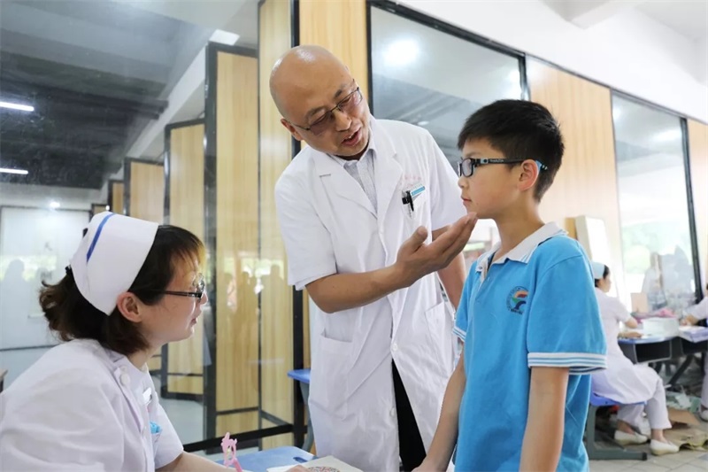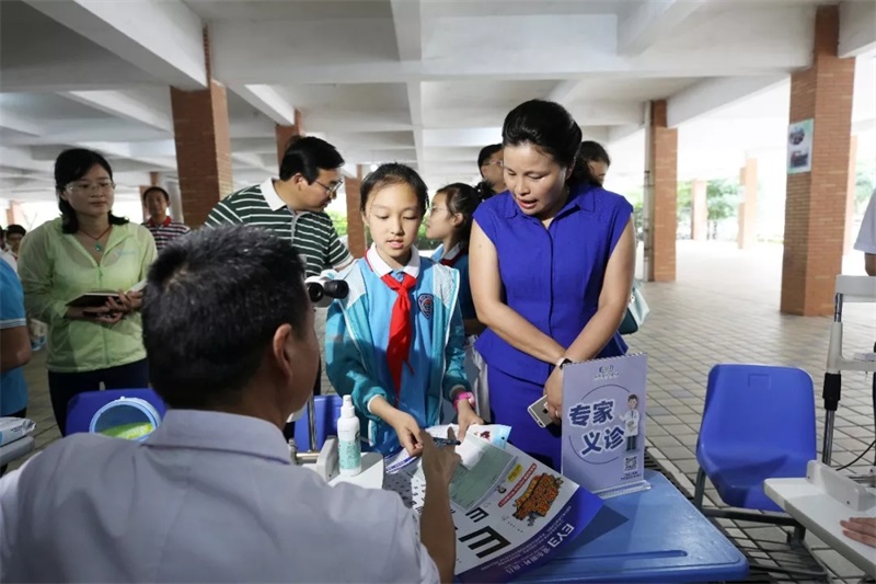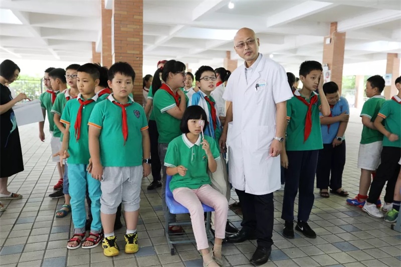 6月6日是全国第23个“爱眼日”,今年的主题为“科学防控近视、关爱孩子眼健康”。为在全社会营造儿童青少年视力保护“政府主导、部门配合、专家指导、学校教育、家庭关注”的良好氛围,南昌市卫计委、南昌市教育局、南昌市体育局联合举办的“眼科专家进校园活动”于6月6日上午在南昌师范附属实验小学红谷滩校区一部举行。市政府副市长龙国英亲临活动现场,看望慰问医务人员,并与孩子们开展互动。