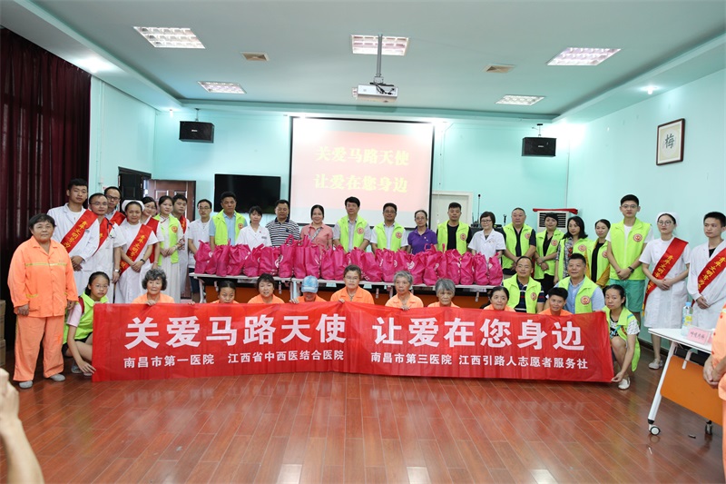 在江西省引路人志愿服务社的感召下,捕鱼游戏 同南昌市第一医院、江西省中西医结合医院志愿者们为百花洲街道、南浦街道、绳金塔街道等三个街道辖区内380名环卫工人赠送装有“胎菊、藿香正气水、清凉油、绿豆、冰糖、毛巾、香皂”等防署物品的清凉包,感谢始终坚守一线的环卫工人们为擦亮国家卫生城南昌品牌而付出的辛勤劳动。同时捕鱼游戏 省、市级青年文明号志愿者、青年党员志愿者们来到南浦街道,为环卫工人开展免费测血压、血糖、用药咨询等义诊咨询活动,关心环卫工人的工作情况,指导环卫工人在夏季高温时段室外作业时如何做好防暑降温措施。通过活动呼吁全社会关注环卫工人,尊重环卫工人的劳动成果,养成良好的卫生习惯。