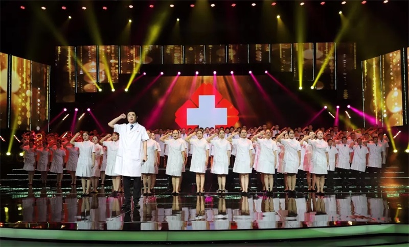 开场节目诗朗诵《生命的承诺》,120位演员方阵由捕鱼游戏 医务人员组成,五位主要演员中的三位出自捕鱼游戏 ,临床科室医务人员克服繁忙的工作,积极参与排练。