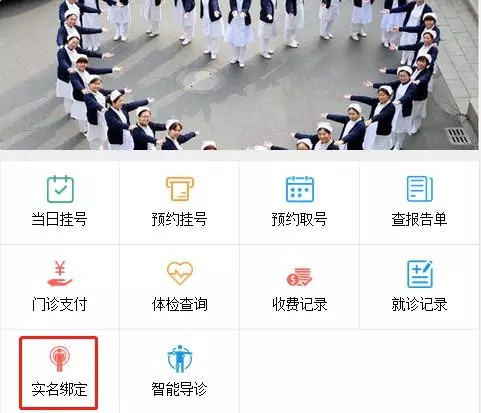 3.有就诊卡(需2018年1月1日后新建或更新过信息的就诊卡)的患者点击“实名绑定”