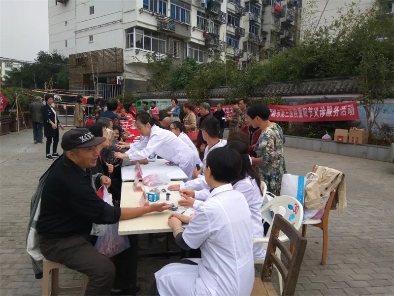 为了庆祝“九九”重阳节,弘扬中华民族“尊老、敬老、爱老、助老”的传统美德,丰富社区老人的文化娱乐生活,使“老有所养、老有所乐、老有所为、老有所依”落到实处,10月17日上午,捕鱼游戏 健康服务部联合行二党支部、门诊党支部一行10余人走进西湖区绳金塔街道绳金塔社区,与60余位老人和社区干部们一起共度重阳佳节。
