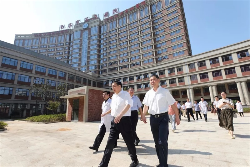 最后,周关主席一行参加了在朝阳院区举行的南昌市卫生健康系统健康科普宣讲大赛暨庆祝第二个中国医师节表彰活动,现场为南昌市2018-2019年“百名优秀医师”、援外援疆医疗队医生代表颁奖并参加了中国医师节集体宣誓。