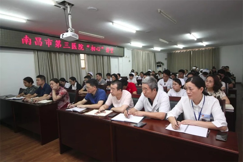 党委书记孙太平以《不忘医者初心 牢记健康使命》为题,讲述了共产党员要坚持以“时代之问”为导向,突出学习贯彻习近平总书记视察江西重要讲话精神,从红色基因中汲取强大精神力量,把习近平总书记关心关怀转化为医务工作者对党忠诚的政治信仰,转化为救死扶伤、为群众除病痛助健康的使命担当。