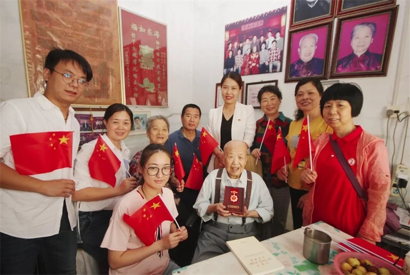 慰问组一行与老人促膝而坐,拉起家常,关切地询问老人的日常生活及健康状况,党委书记孙太平将中共中央、国务院、中央军委“庆祝中华人民共和国成立70周年”纪念章逐一亲手交给老人。结合正在开展的“不忘初心 牢记使命”主题教育,党办送学上门,离退休党支部书记窦月莲带着老党员学习习近平对江西工作重要讲话金句。嘘寒问暖中,将党的关怀送到老人的身边……