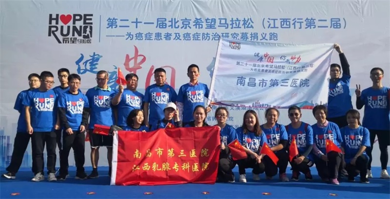 11月2日,由国家癌症中心、中国癌症基金会等联合主办的第二十一届北京希望马拉松(江西行)——为癌症患者和癌症防治研究募捐助力义跑活动在艾溪湖湿地公园举行。捕鱼游戏 作为南昌市肿瘤康复协会牵头组建单位,派出21名乳腺肿瘤科、放疗科的医护人员和患者代表参加活动。