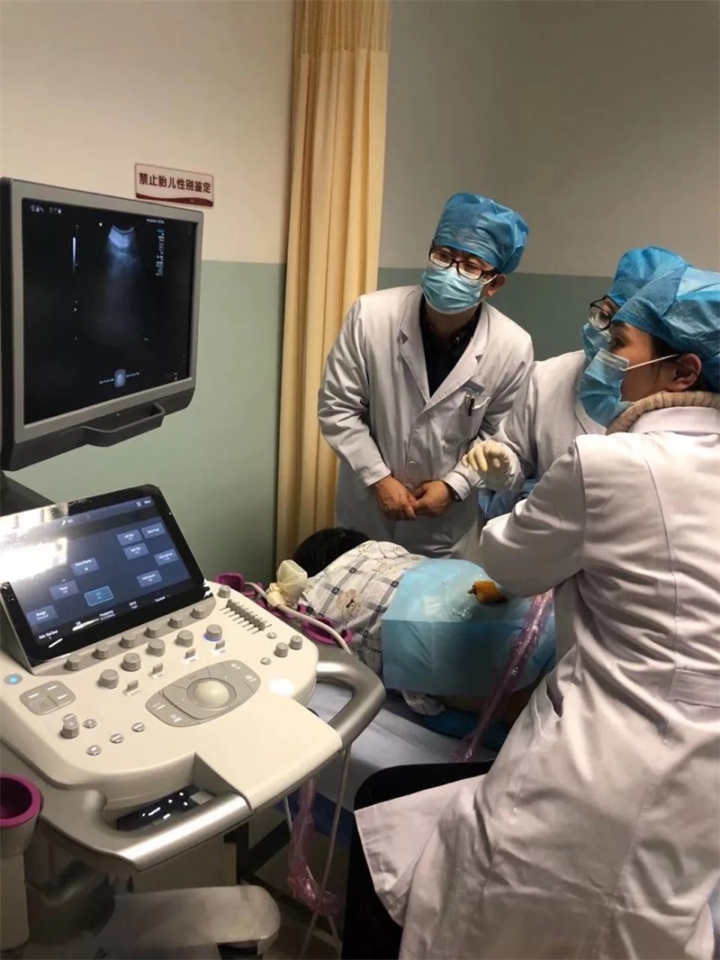 刘圣山副院长查房后了解到患者的病情,得知科室准备在朝阳院区开展首例肾穿刺术后,积极协调相关科室,给予了鼎力的支持。肾穿刺活检术在肾内科王殿尹、邓平根主任医师的指导下,超声科汤兵辉主任、聂园梅医师及李静护师的合作下,周娲和邓真真医师顺利地为患者进行了肾穿刺活检,患者穿刺过程顺利,术后病区护士长余艳珍及护理团队对患者悉心护理,患者生命体征平稳,无血尿、腰疼等并发症。早在2016年抚河院区肾内科与超声科王广珊主任合作开展了该项技术。