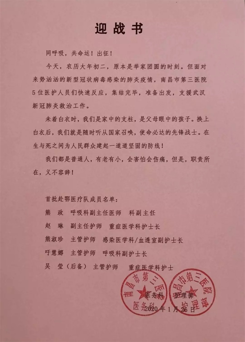南昌市三医院首批援鄂抗疫医疗队出征仪式