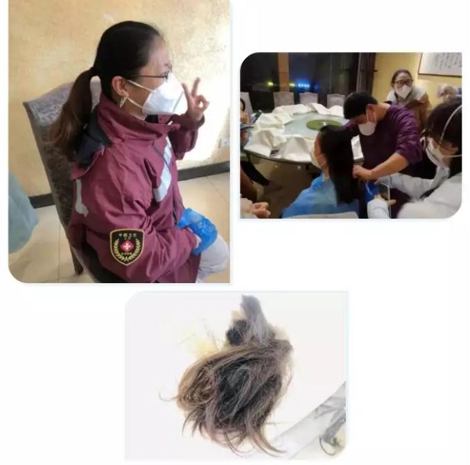 “一刀剪下去,就像壮士断腕般的坚定,听到咔擦咔擦的声响万般不舍!愿我们大家都平安归来!”