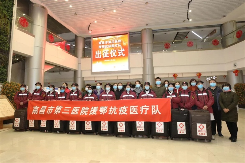 2月15日下午,大雨瓢泼,寒风呼啸。捕鱼游戏 精心选派12名医护精英,随南昌市卫生健康系统第五批援助湖北医疗队出征武汉。医院全体领导班子成员、相关职能科室主任为援鄂英雄送行。