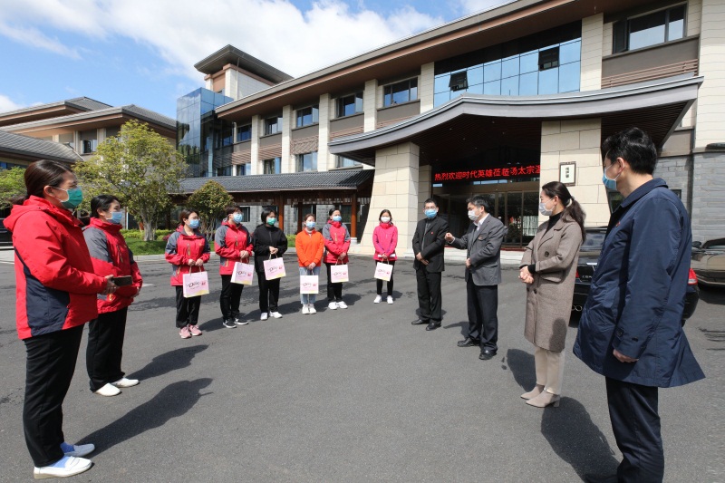 “大家辛苦了,在这里住的怎么样?我们都在等着你们休养结束,平安健康回家!”赵海金一行分别来到九江星子县和庐山西海驻地,与21位医疗队员代表亲切交流,详细了解他们援助湖北期间工作开展和返赣后的休整情况。赵海金说,援助湖北医疗队员舍“小家”、顾“大家”,义无反顾奔赴抗疫最前线,与病毒战斗,取得了住院病人“零死亡”,出院病人“零返院”,医护人员“零感染”的战绩。以实际行动践行了南昌新时代医务工作者崇高的职业精神、无私的大爱精神和炽热的爱国主义情怀。希望队员们好好休整,养足精神,以更加饱满的精神投入到今后的工作中。随后,领导为队员们送上了慰问品。