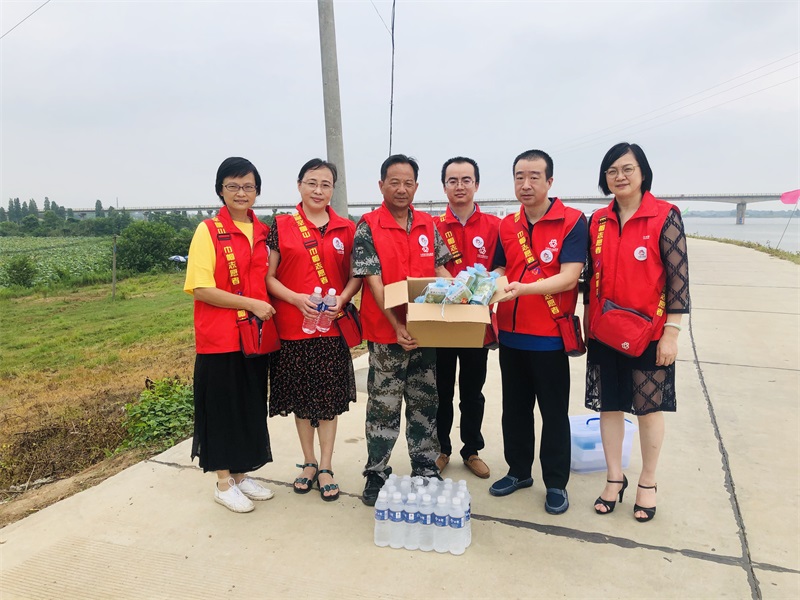 此情此景,更是激励着志愿者们迫不及待地投入到志愿活动当中去。志愿队员为大堤上的巡堤员进行了体格检查,测量血压,监测血糖,并为他们发放防暑降温及防蚊药品。门诊支部书记徐文达同志还热情地给一线工作人员分享了防暑降温小常识,嘱咐大家一定要保重身体,保持充沛体力,才能护好堤坝。