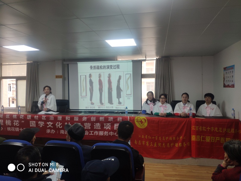 为普及脑卒中的危害和防治知识,倡导健康的生活方式,江西省红十字志愿护理服务中心、南昌市护理学会社区志愿护理专业委员会,联合捕鱼游戏 神经内科和患者服务中心来到桃花镇十里村,开展“脑卒中和骨质疏松症的预防”健康讲座和义诊活动。