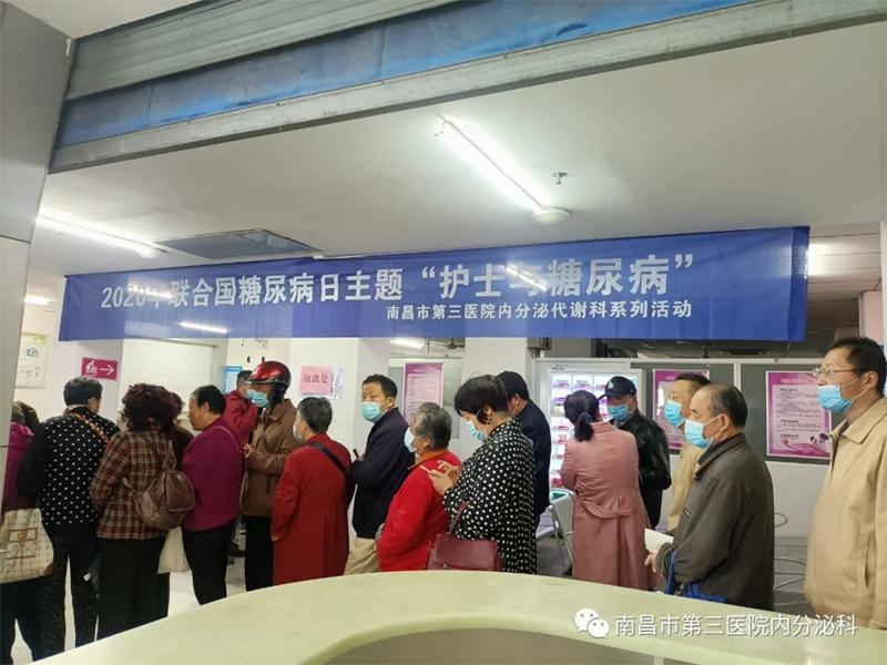 为了更好的诊治及管理糖尿病患者,捕鱼游戏 举办了联合国糖尿病日系列活动,本次活动由内分泌代谢科承办。此次活动得到了各级领导的高度重视及各兄弟科室的大力支持,捕鱼游戏 副院长刘圣山出席会议,护理部主任龚素敏、护理部副主任余金花、营养科主任丁浔、科护士长熊冬梅、宗允及全院各科室护士长、多学科协作糖尿病护理管理团队成员参会。活动得到了社区居民及糖友们的积极报名和热情参与,内分泌代谢科为患者提供了免费体格检查,血糖、血脂、糖化血红蛋白检测,医疗及护理专家义诊,心理专家义诊,发放健康手册,进行了个体化的糖尿病饮食指导,参与患者300余人。