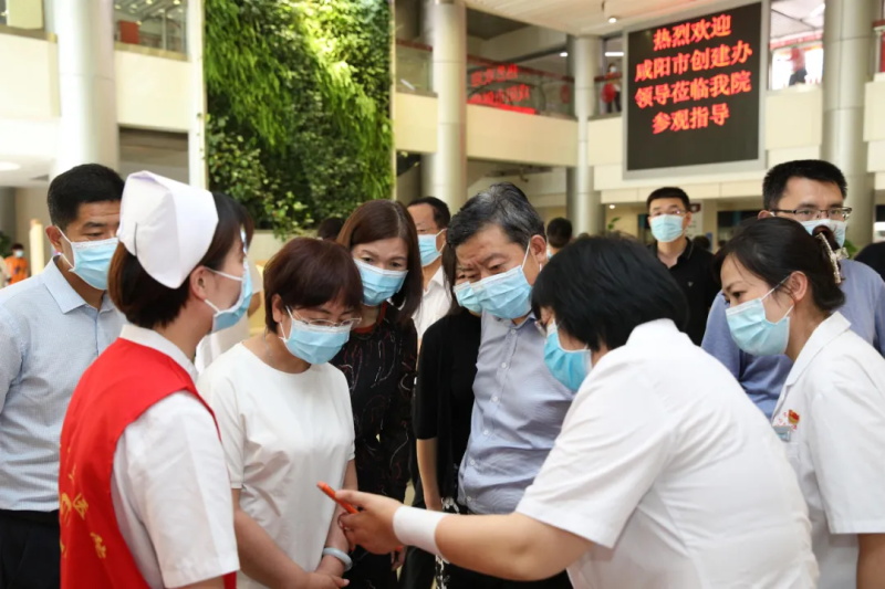 6月9日上午,根据南昌市文明办的推荐,陕西省咸阳市文明办主任蒲春侠、卫健委副主任李建业等一行12人,到捕鱼游戏 朝阳院区实地考察全国文明城市创建工作,医院副院长吴丽萍陪同考察。