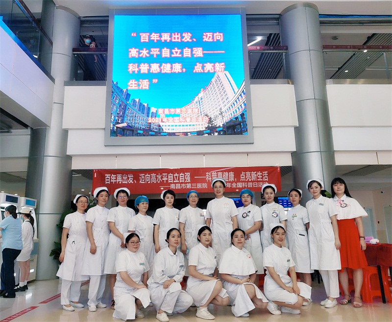 9月14日上午,捕鱼游戏 护理部组织南昌市护理学会挂靠捕鱼游戏 的六个护理专委会成员,分别在捕鱼游戏 朝阳院区门诊部大厅、西湖区绳金塔街办活动中心、耶苏堂社区文化广场开展了义诊活动和科普宣传,纪念“全国科普日”。今年全国科普日活动主题是“百年再出发、迈向高水平自立自强——科普惠健康,点亮新生活”。
