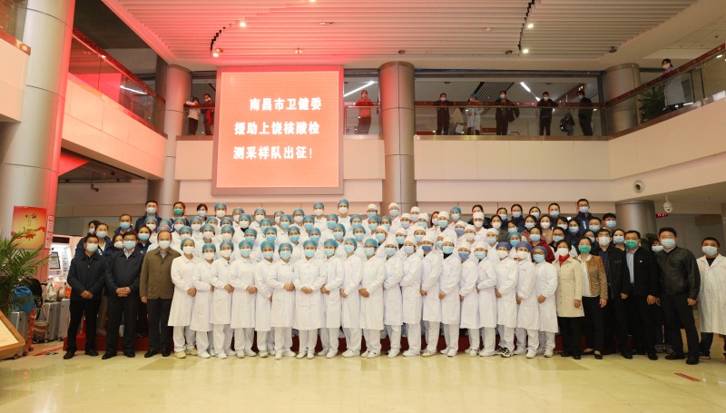 11月5日下午,大雨瓢泼,南昌市卫生健康委援助上饶核酸检测采样队100余人在捕鱼游戏 朝阳院区集合完毕,整装待发。此支核酸检测驰援队来自4家市直医院及各县区的核酸检测骨干人员。