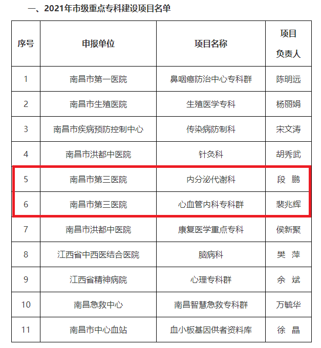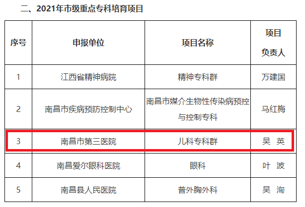 日前,南昌市卫生健康委员会发布了《关于2021年市级重点专科建设项目和市级重点专科培育项目建设单位名单的公示》,经过擂台赛,捕鱼游戏 三个学科榜上有名,内分泌代谢科、心血管内科专科群荣膺2021年市级重点专科建设项目,儿科专科群荣膺2021年市级重点专科培育项目。