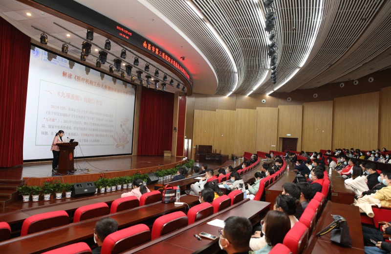 院办对医院2021年度信访投诉进行了数据化分析;医务科运用临床真实案例和数据,对18项医疗质量安全核心制度进行了详细的解读;投诉中心围绕“如何有效避免医疗场所暴力及典型案例分享”,深入浅出地阐述了医务人员日常工作中规范做好诊疗和服务的重要性。全体参会人员观看了警示教育片《医者之鉴:折翼的白衣天使》。