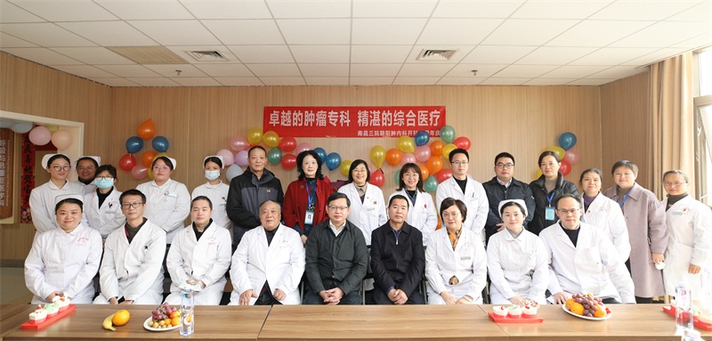 莫羡三春桃与李,桂花成实向秋荣。有着51年历史的肿瘤内科,在抚河院区、朝阳院区均开设门诊和住院病房,近日,入住朝阳院区两周年啦!两院区现有病床90张,医生14人,护理人员25人,其中主任医师2人、副主任医师3人,博士1人、硕士9人,是一个充满朝气、阳光自信的团队。以晚期乳腺癌规范化综合诊治为特色,开展肝癌、肺癌、肾癌、胃癌、宫颈癌、卵巢癌等恶性实体肿瘤的综合治疗及各类微创技术、各类出血性疾病的栓塞介入、微波消融、肿瘤深部热疗等技术。