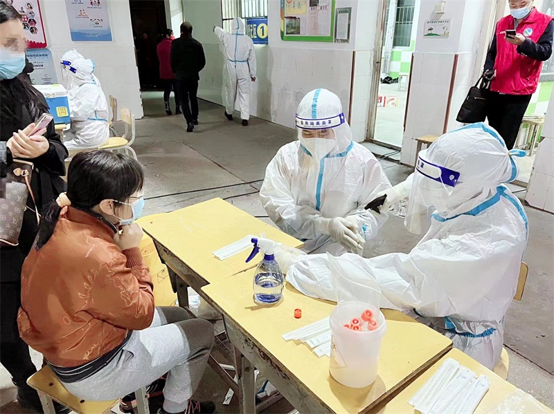 郭薛娇、杨樱娟、邓丽、秦燕的工作任务是入户为无法行动的居民核酸采集,包干的吉水仓和直冲巷社区属于老旧小区楼,没有电梯,需要不停上下爬楼梯。