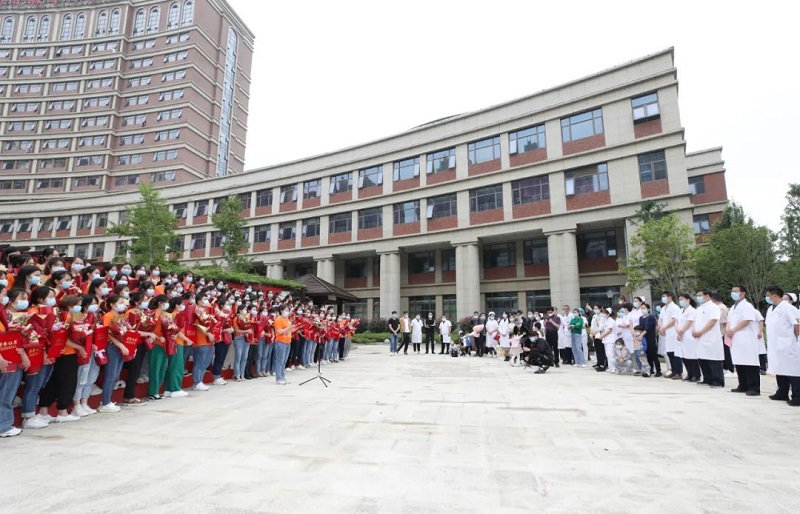 院领导班子成员为抗疫英雄献上鲜花,欢迎他们回家!
