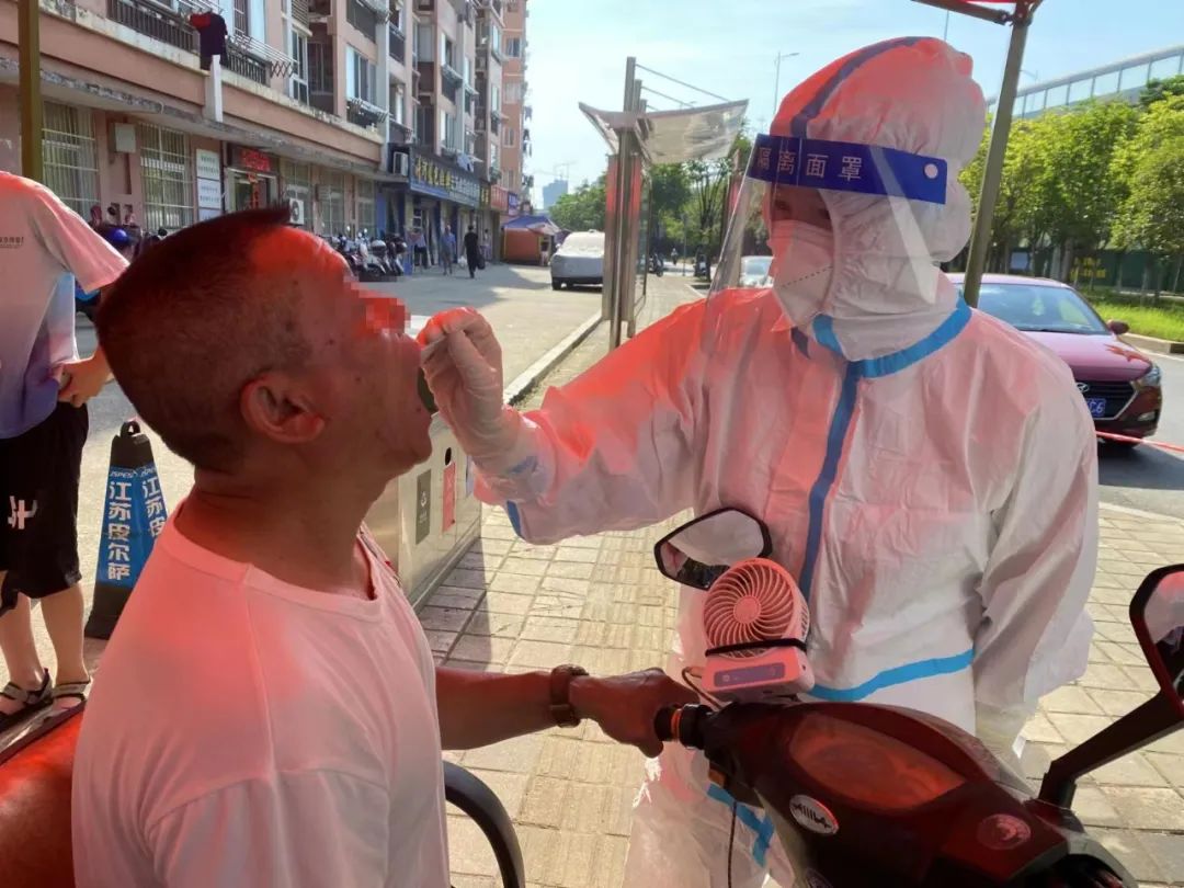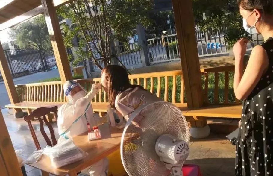 看着酷暑中汗流浃背仍坚守在采样点的医护人员,居民既敬佩又心痛。热心居民送来爱心西瓜,“忙完了有空吃点西瓜消消暑,大热天儿的你们辛苦了。”很多社区干部在采样点,搭起遮阳棚、放置冰块、送来绿豆汤,源源不断地为医护人员送去清凉。