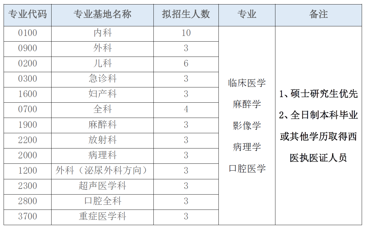 2.全科、麻醉科、儿科、妇产科、急诊科、重症医学科、病理科作为国家紧缺专业,优先录取。