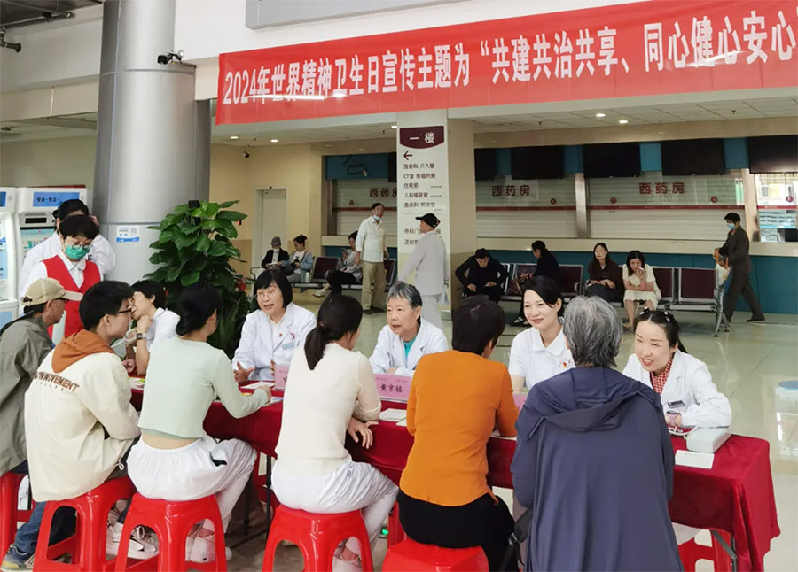10月10日是世界精神卫生日,捕鱼游戏 门诊部在朝阳院区门诊大厅开展“世界精神卫生日”义诊活动。今年的活动主题是“共建共治共享,同心健心安心”,旨在提高公众对精神疾病的认识,指导群众提高心理健康的自我保护意识,促进社会和谐发展。